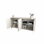 - Amplio almacenamiento: Dispone de 4 puertas con 2 estantes internos que permiten organizar vajilla, utensilios y objetos de uso cotidiano de manera práctica.