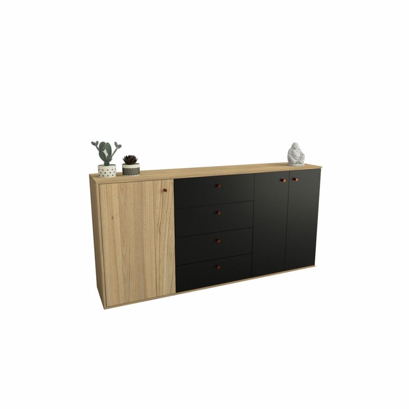 - Diseño funcional: Con 3 puertas y 4 cajones, brinda un espacio generoso para organizar vajilla, utensilios y objetos de uso diario sin perder armonía visual.