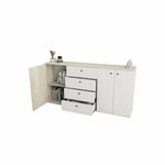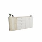 - Diseño funcional: Con 3 puertas y 4 cajones, brinda un espacio generoso para organizar vajilla, utensilios y objetos de uso diario sin perder armonía visual.
