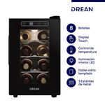 El cava de vinos Drean de 8 botellas es una opción práctica y elegante para conservar tus vinos a la temperatura ideal. Su sistema de termocompresor ofrece un enfriamiento estable, mientras que su diseño compacto permite ubicarlo en cocinas, livings o quinchos sin ocupar demasiado espacio. El display digital facilita el control preciso de temperatura para lograr la mejor conservación.