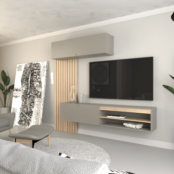 El centro de entretenimiento para colgar Table’s combina diseño moderno y funcionalidad, ideal para mantener tu televisor, consolas y objetos decorativos perfectamente organizados. Su estructura flotante optimiza el espacio y aporta un toque contemporáneo al ambiente.