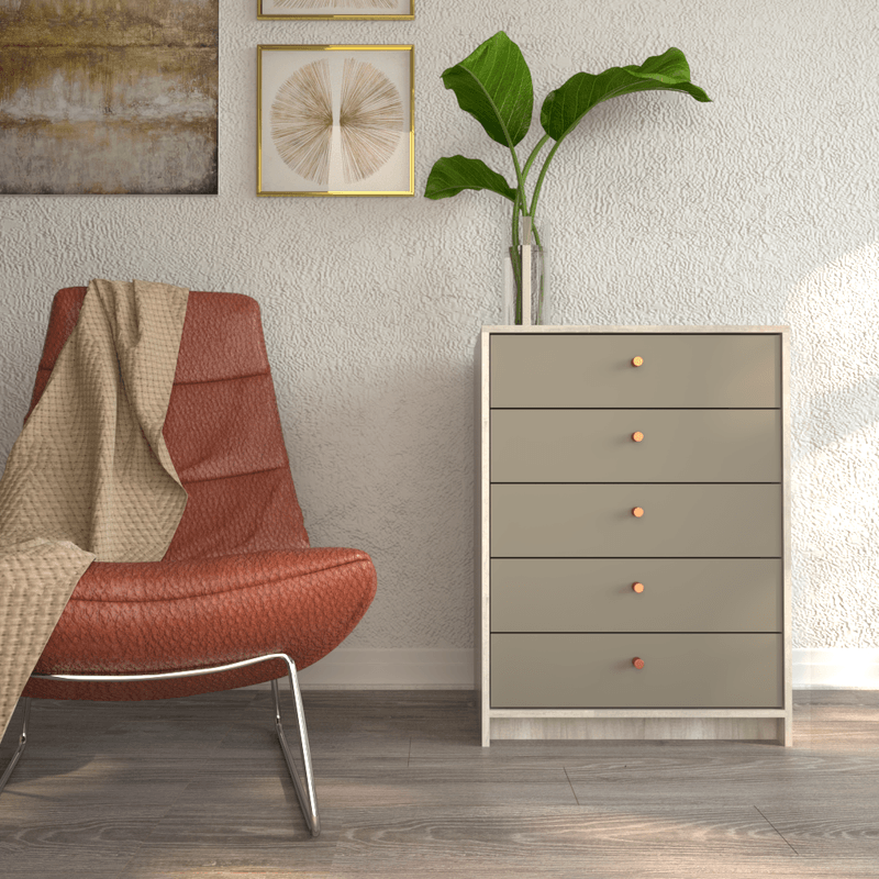 El chifonier Table’s de 5 cajones es un mueble funcional y elegante, ideal para organizar ropa y objetos personales en tu dormitorio. Su terminación en caoba tabaco le aporta calidez y un estilo sofisticado que combina con distintos ambientes del hogar.