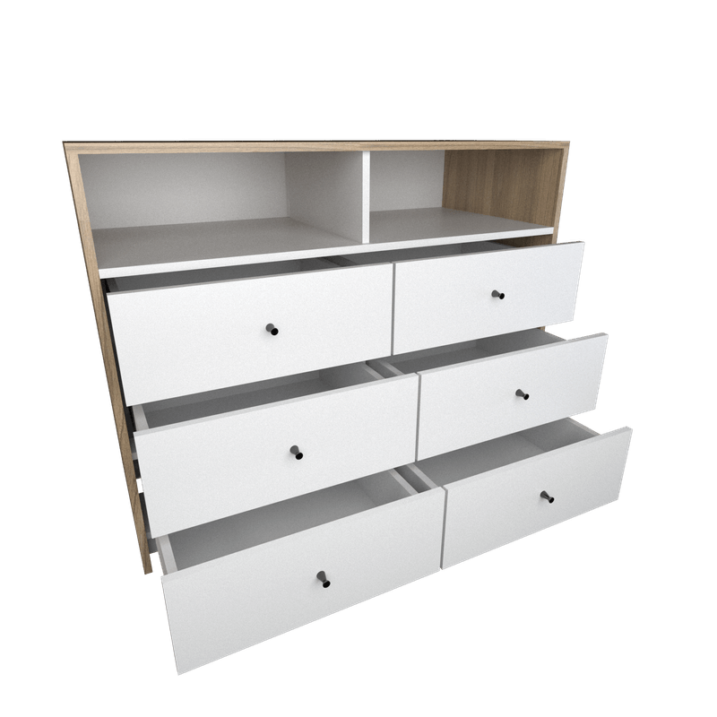 - Amplio almacenamiento: Dispone de 6 cajones espaciosos que ofrecen comodidad y capacidad de guardado.