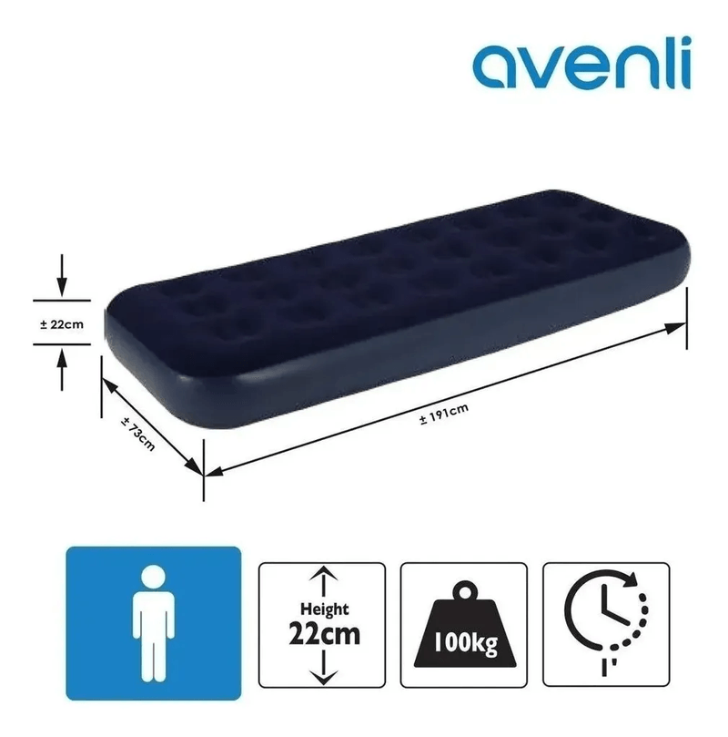 El colchón de aire Avenli es una opción práctica y cómoda para tener siempre lista una cama extra en casa o para llevar de viaje. Su superficie afelpada aporta mayor confort, mientras que su estructura inflable permite un guardado sencillo y rápido armado.