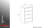 La cómoda Ricchezze Murano de 2 puertas y 4 cajones es un mueble robusto y funcional, ideal para organizar ropa, accesorios y objetos en el dormitorio. Su diseño en melamina touch de 15 mm combina practicidad y estilo moderno para distintos ambientes.