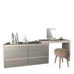 - Diseño multifuncional: Incorpora 6 cajones amplios y un práctico sector tipo escritorio o maquillador, ideal para organizar productos de belleza o accesorios personales.
