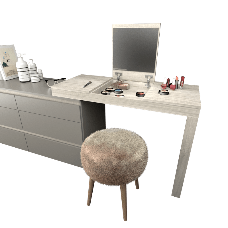La cómoda Table’s de 6 cajones con maquillador combina elegancia, practicidad y gran capacidad de guardado. Su diseño funcional permite utilizarla tanto como cómoda tradicional como tocador o escritorio, adaptándose a diferentes espacios y necesidades.