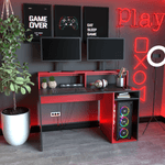 El escritorio gamer Table’s está diseñado para brindar comodidad, funcionalidad y un estilo moderno ideal para espacios de trabajo o juego. Su estructura robusta y práctica permite mantener todo organizado y al alcance de la mano.
