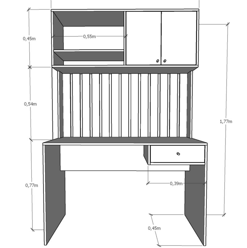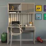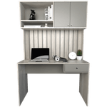 - Diseño funcional con alzada: Incluye un módulo superior tipo alacena autoportante, ideal para mantener libros, carpetas o elementos decorativos al alcance de la mano.