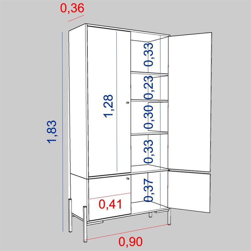 - Medidas: Ancho: 90 cm, Alto: 183 cm, Profundidad: 36 cm.