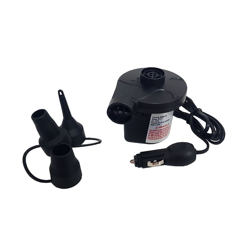 El inflador eléctrico Broksol 12V es la opción ideal para inflar y desinflar de manera rápida y sin esfuerzo. Compacto y potente, se conecta directamente al encendedor del auto, lo que lo hace perfecto para llevar en viajes, campamentos o días de playa.