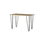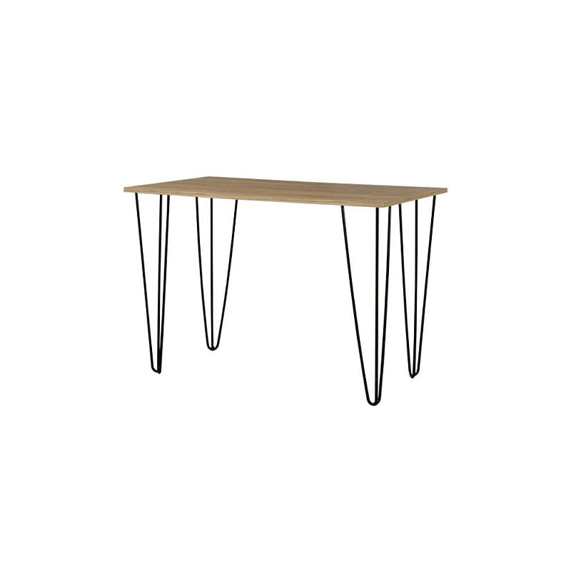La mesa de la línea industrial es un producto logrado mediante la combinación de melamina símil madera color Atakama y las patas negras de hierro maciza.
