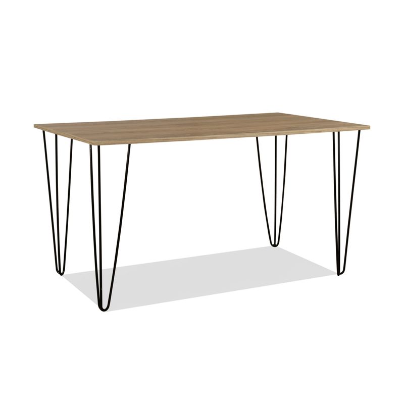 La mesa de comedor es un mueble robusto y funcional, inspirado en un estilo de diseño fabril con toques modernos. Su estructura combina materiales resistentes y terminaciones de calidad, logrando una pieza versátil y duradera para el uso diario.