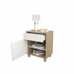 La mesa de noche Table’s 1 cajón y 1 puerta es un mueble práctico y moderno, diseñado para aportar funcionalidad al dormitorio. Con un sistema de apertura sin manijas y materiales resistentes, combina comodidad y estilo en un solo producto.