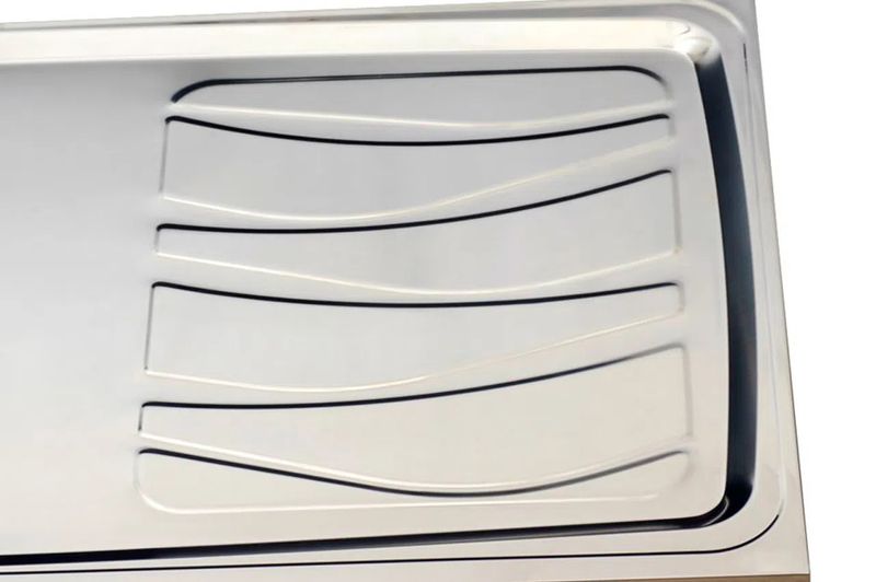 La mesada Ricchezze Arco de 160 x 60 cm ofrece mayor profundidad, ideal para tareas de cocina que requieren más espacio. Su diseño reversible la hace adaptable y su material asegura durabilidad.