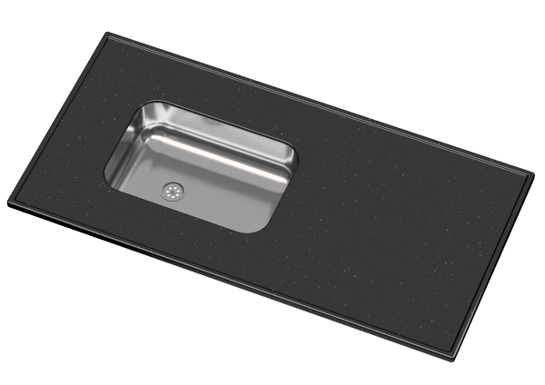 MESADA MARMOL SINTETICO DURAFORT (MA833) 120x53 cm. S/ZOCALO NEGRO BACHA ACERO INOX. REVERSIBL