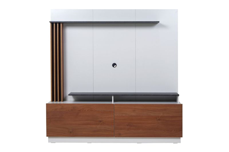 El modular Ricchezze Mesina Scaletta es un centro de entretenimiento que combina diseño moderno y practicidad. Diseñado para televisores de hasta 65”, ofrece compartimentos cerrados y estantes abiertos para mantener todo organizado.