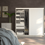 - 2 puertas corredizas: Optimizan el espacio, permitiendo un acceso cómodo y fluido al interior del placard.