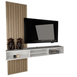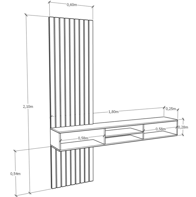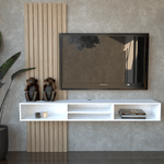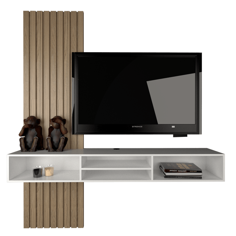 - Estructura práctica: Permite mantener el área del televisor despejada, aportando orden visual y funcionalidad.