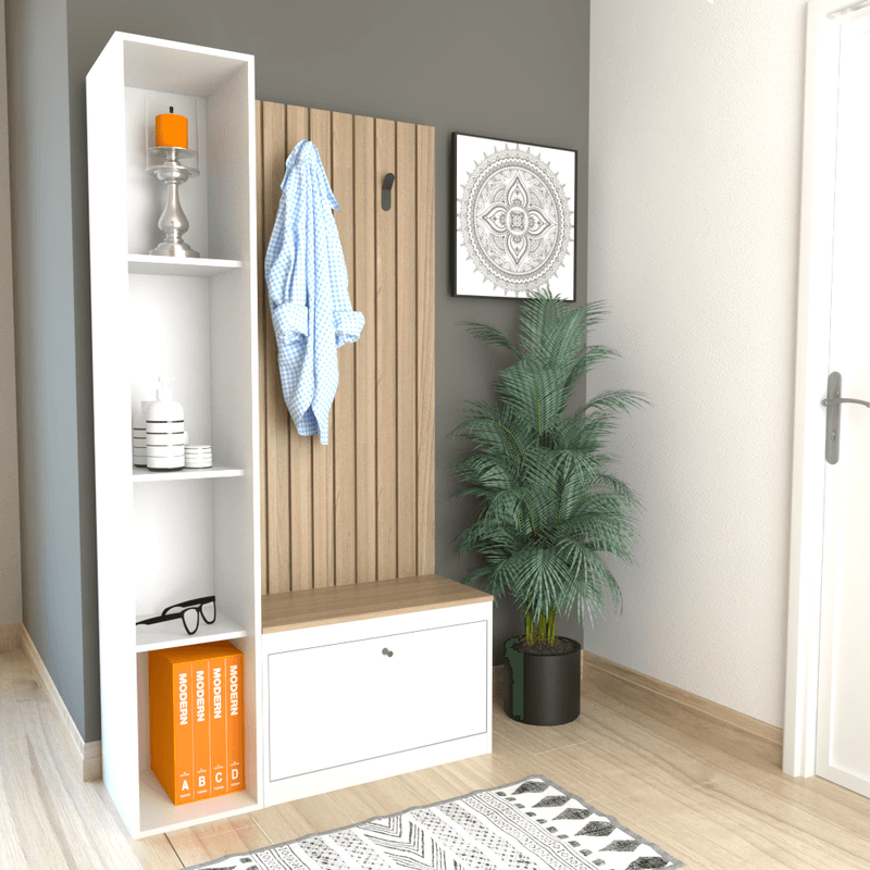 - Percheros metálicos incluidos: Ideales para camperas, bolsos o accesorios.