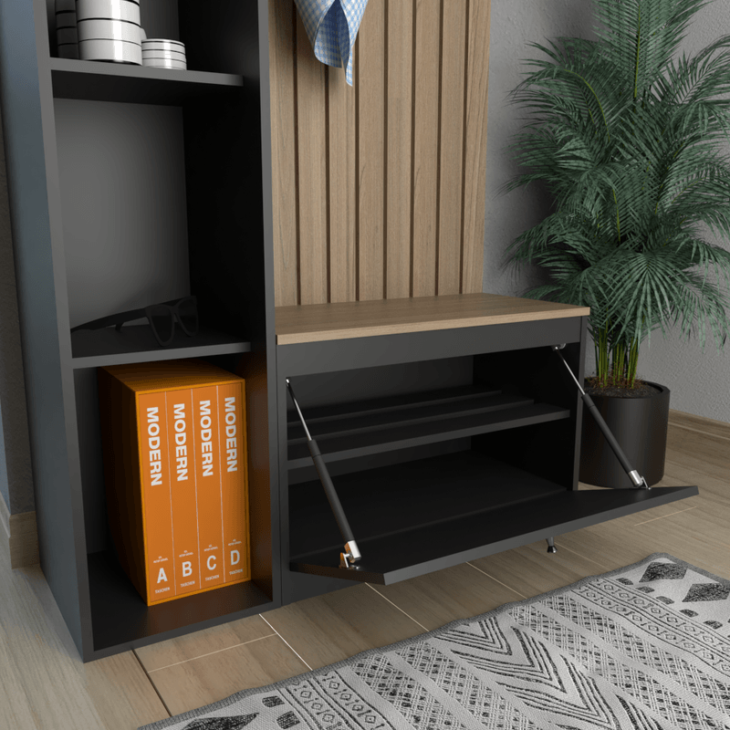 El recibidor zapatero Table’s con columna es una solución práctica y moderna para mantener el orden en la entrada del hogar. Su diseño vertical con columna lateral permite organizar calzado y abrigos de manera eficiente, ocupando poco espacio y aportando un estilo contemporáneo al ambiente.